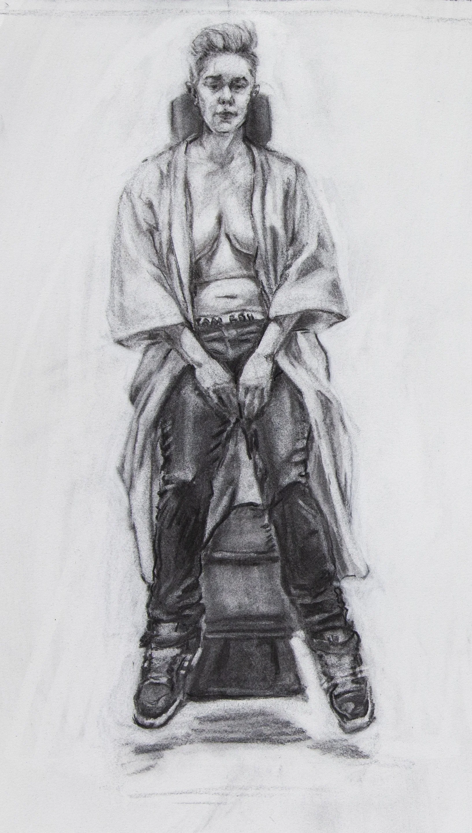 Gender Traitor // Charcoal and ink on canvas // 18” x 24”